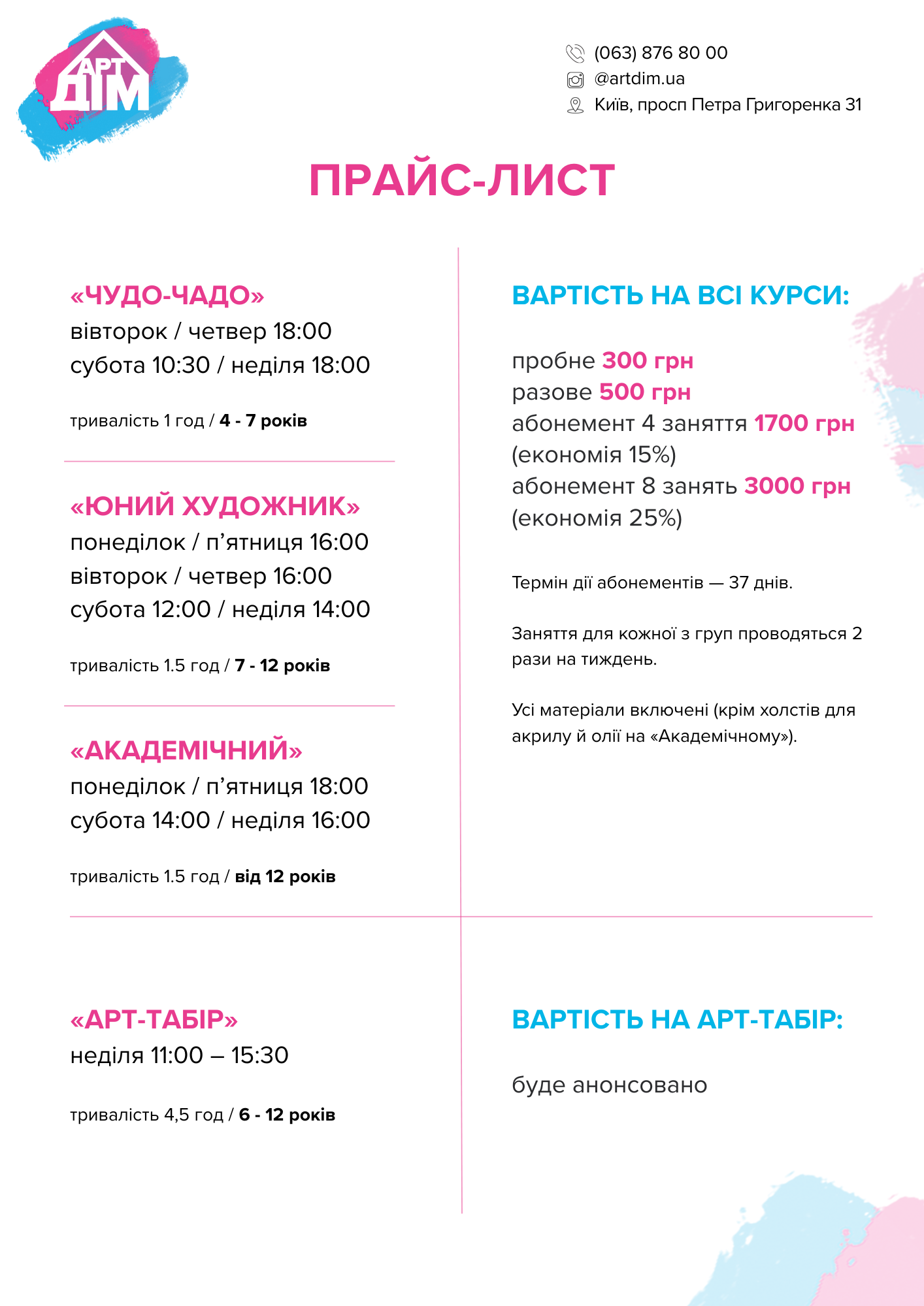 Також у нас регулярно проходять майстер-класи, арт-заходи та творчі літні табори.